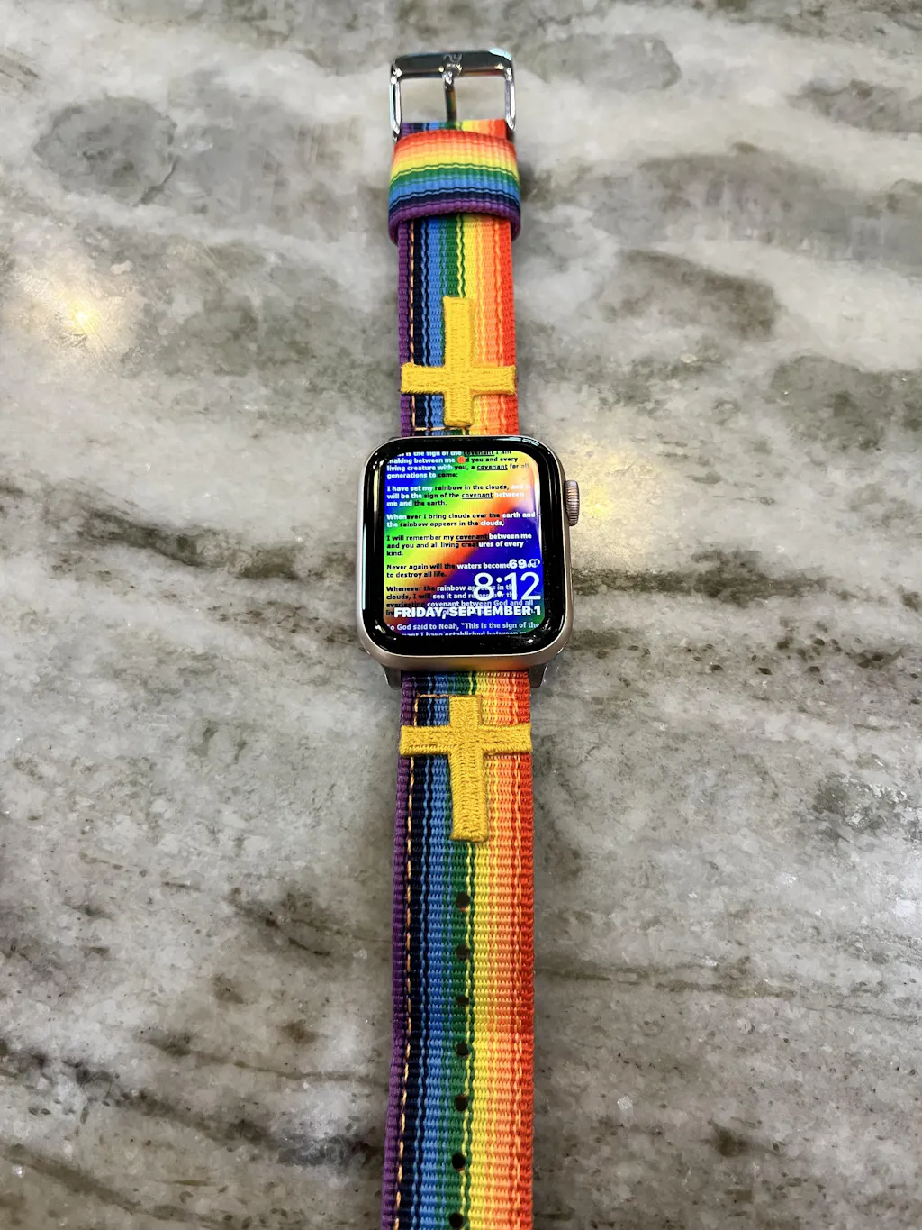 LIMITED RELEASE!! We have crafted a single durable Apple Watch nylon band with a comfortable, fabric-like feel resembling the popular Apple Watch Pride band.